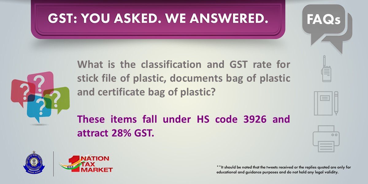 Gst Goi A Twitter What Is The Classification And Gst Rate For Stick File Of Plastic Documents Bag Of Plastic And Certificate Bag Of Plastic Gstsimplified Https T Co Nuru7kuf4n - Find the gst tax rate, hsn code or sac code for over 20 thousands goods and services.