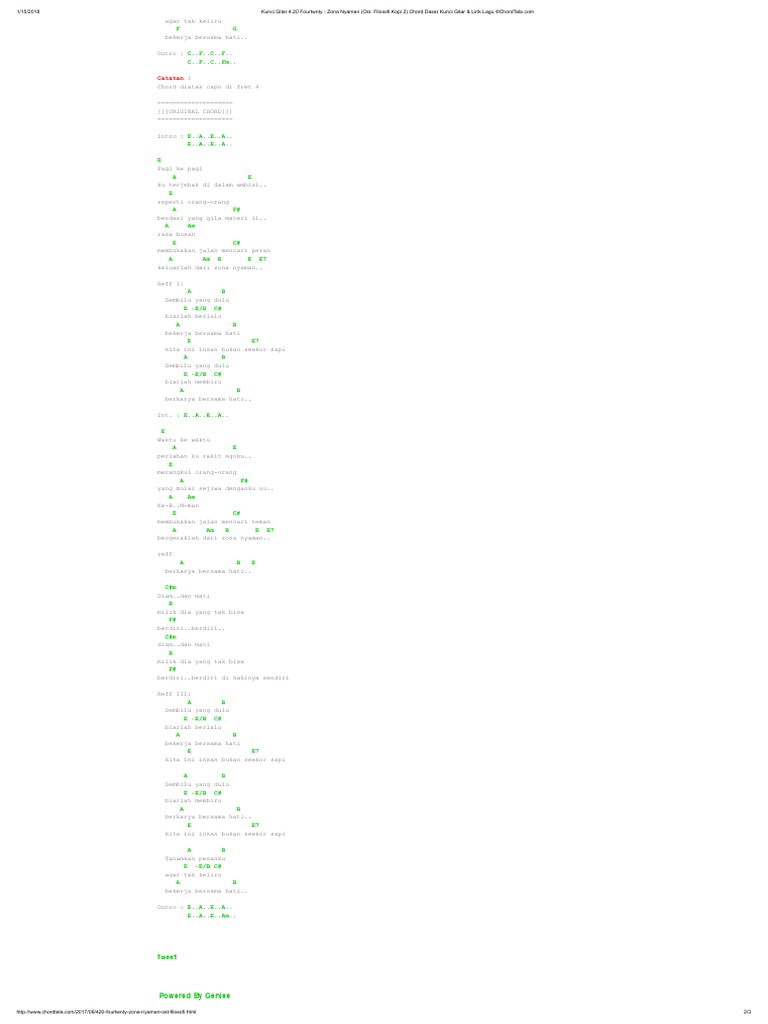 Chord Zona Nyaman Original : Makanya enggak heran kalau chord gitar lagu zona nyaman milik fourtwnty ini enak dinyanyikan. Chord Zona Nyaman Original / Chord gitar fourtwnty zona nyaman ost filosofi kopi 2 kunci dasar.