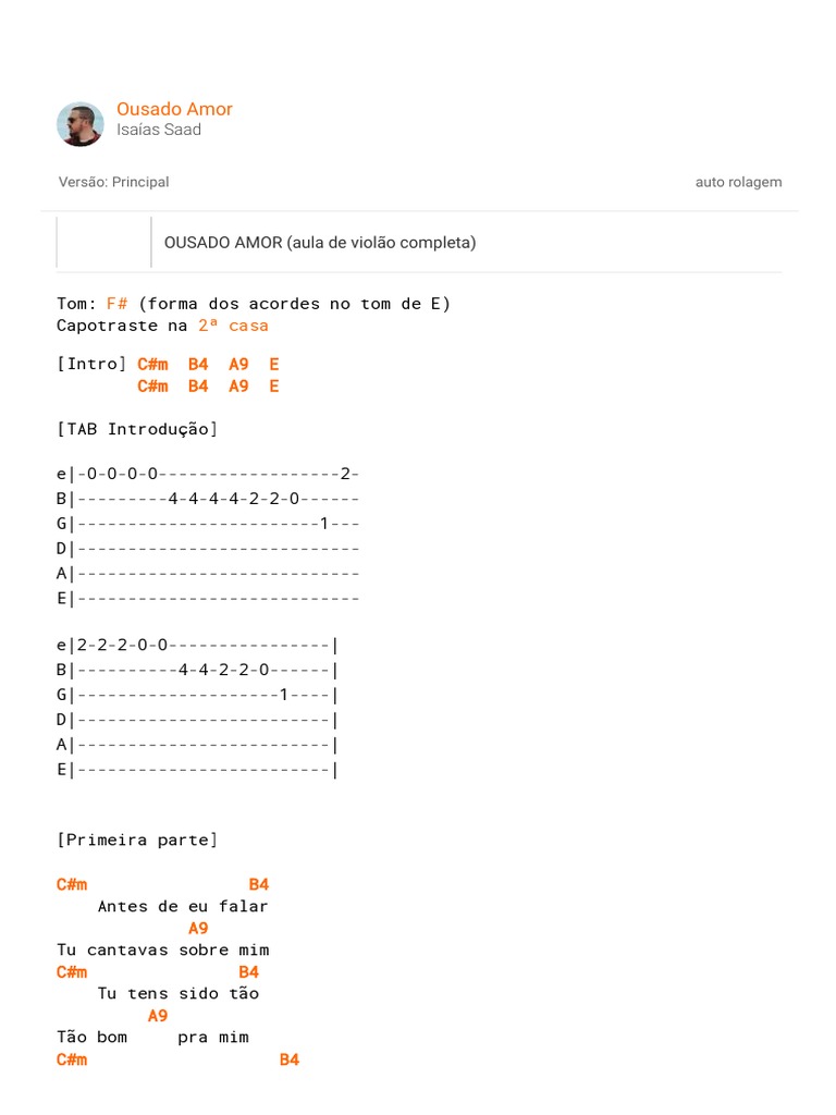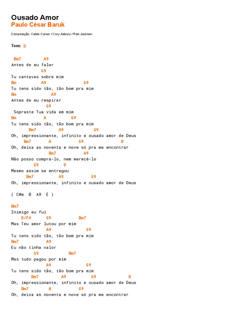 Cifra Da Musica Ousado Amor : Tu tens sido tao,tao bom pra mim. Cifra Da Musica Ousado Amor - Diferenca entre cifra melodica e cifra.
