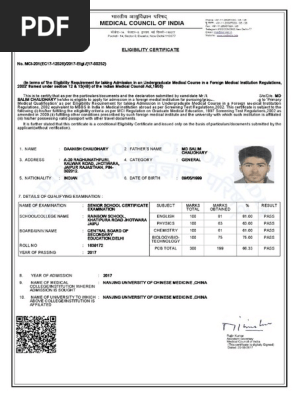 Mci Eligibility Certificate Number : Mci eligibility certificate is a mandatory requirement for a medical students pursuing mbbs abroad.