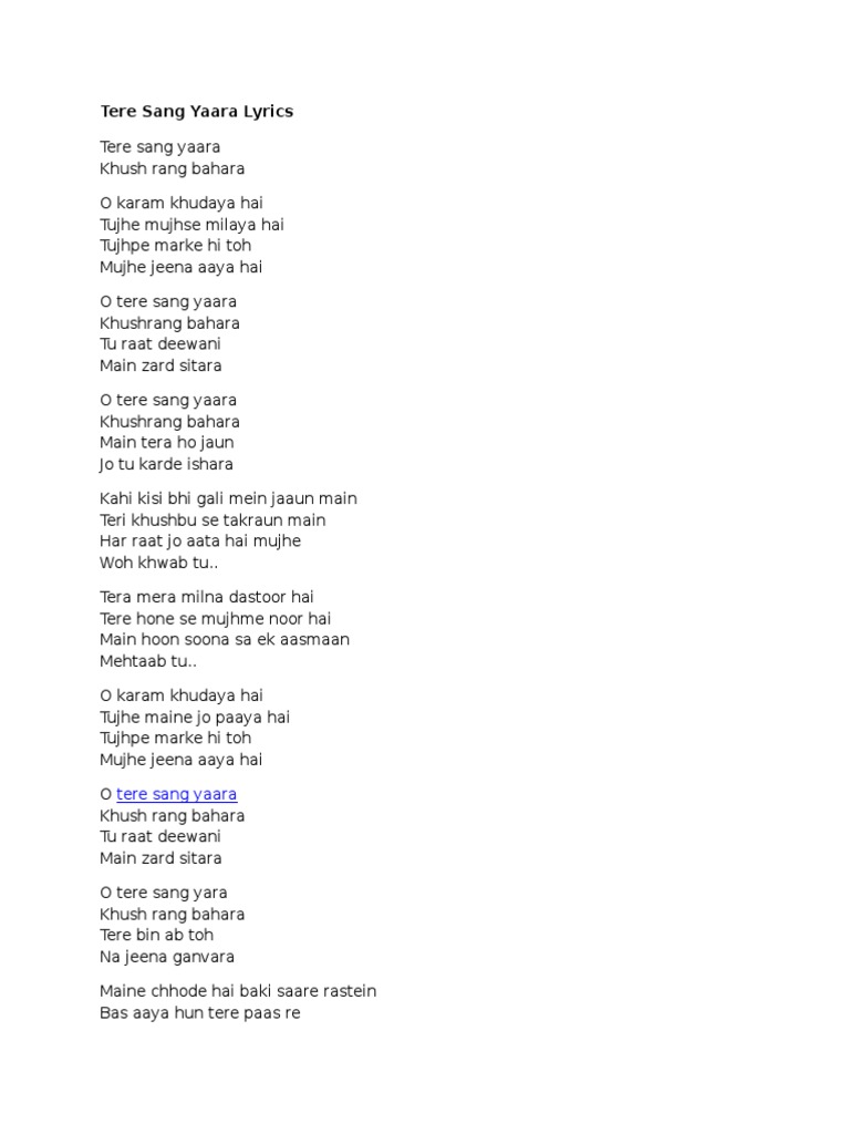 Tere Sang Yaara Lyrics - The video contains the song lyrics, which include the first 300.