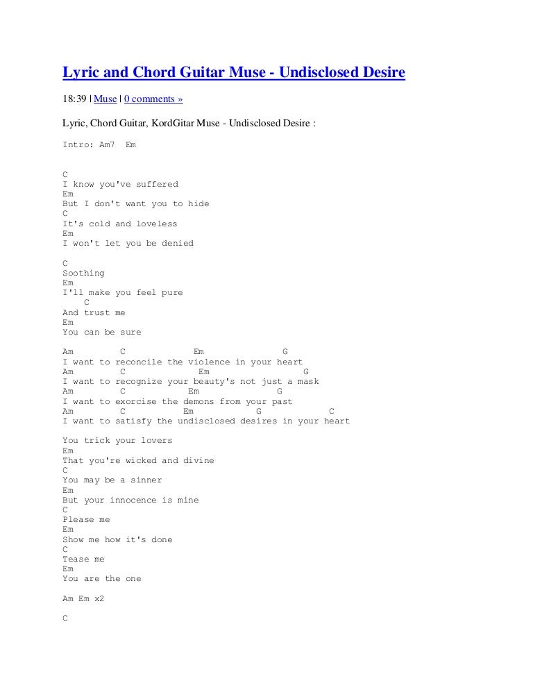 Undisclosed Desires Lyrics Deutsch - You take your lovers that you're wicked and divine you may be a sinner but your innocence is mine. Undisclosed Desires Lyrics Deutsch - Ich moechte zu befriedigen, die geheimen sehnsuechte in deinem herzen.