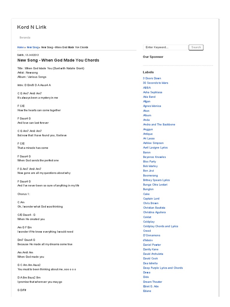 New Song When God Made You Chords Kord N Lirik Musicians Artists - Chris brown (christopher maurice brown).